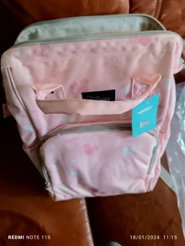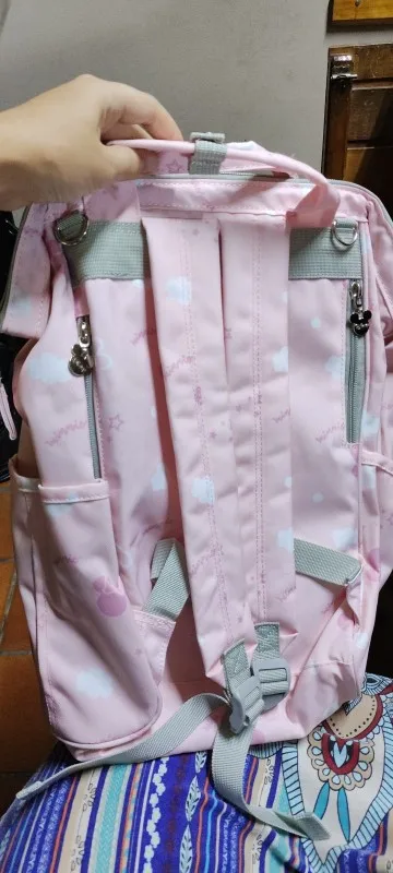Large backpack with compartment for baby bags, diapers, milk cans and even for personal things like coin holders or mobile phones.